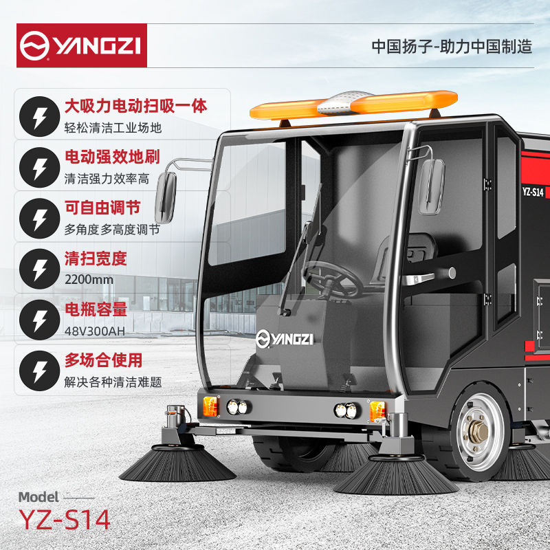 揚子掃地機YZ-S14,加寬清潔直徑,領域廣泛應用城市街道,一鍵操作 /掃吸二合一/高穩(wěn)定性電控/倒車影像/全車LED大燈/高壓沖洗裝置
