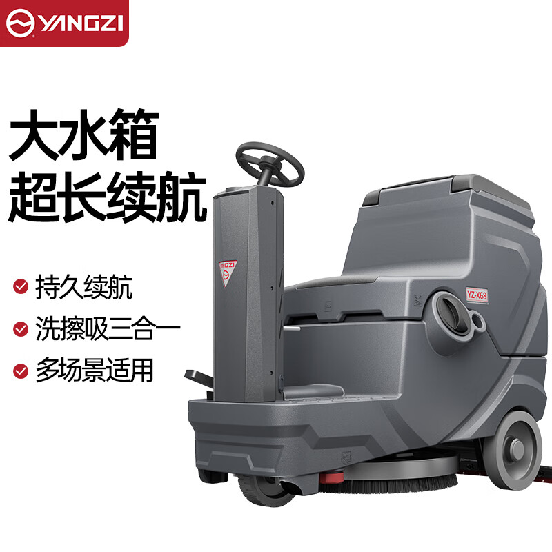 揚(yáng)子洗地機(jī)YZ-X68,一機(jī)多用洗拖刷吸一機(jī)搞定,洗刷吸擦四合一/大容量雙水箱/三電機(jī)驅(qū)動/美特膠條/品牌電池/雙層降噪隔音